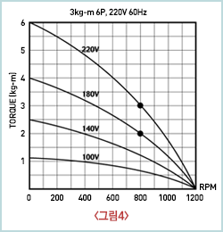 ¿¹¸¦ µé¸é Á¤°Ý 3kg-m, 6P, 220V, 60HzÀÇ °æ¿ì 220V, 800rpm¿¡¼ Torque´Â 3kg-mÀ̳ª ÀÔ·ÂÀü¾ÐÀ» 180V·Î º¯È½Ã۸é Torque´Â